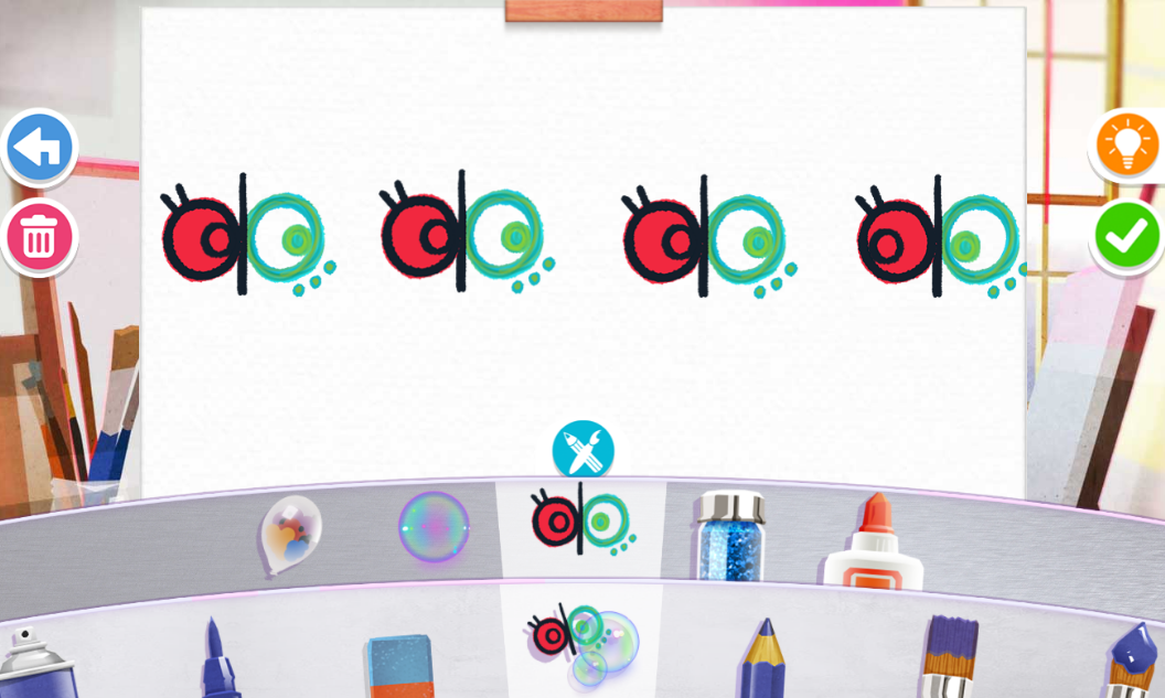 Μπορούμε να δημιουργήσουμε ζωγραφιές τελείως ελεύθερα (LET’S CREATE!) ή με έτοιμα σχέδια (INSPIRE ME!).