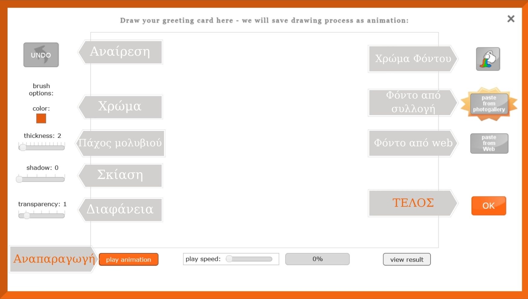 - Σχεδιάζουμε την κάρτα μας. Με το κουμπάκι UNDO ακυρώνουμε-διορθώνουμε την τελευταία μας κίνηση.